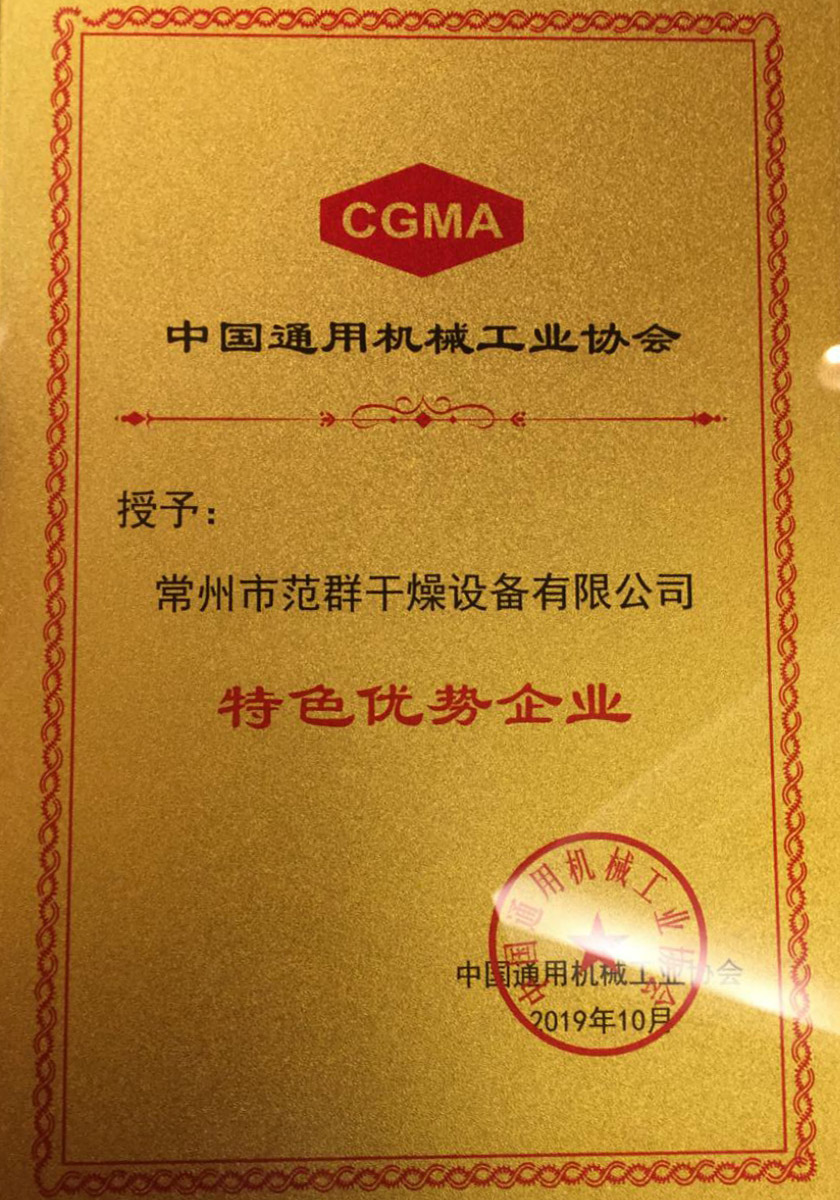 国际流体机械产业论坛旨在通过专业性、权威性的平台,国际化的视野与角度让企业捕捉到技术的方向、产品的未来、市场的趋势,将知识转化为生产力。中国通用机械工业协会授予常州市AC米兰体育干燥设备有限公司“2019年度中通协干燥设备特色优势企业”。