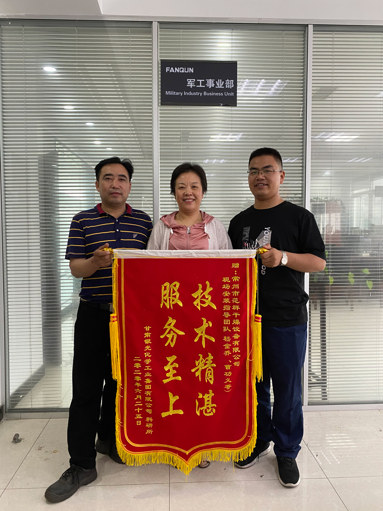 3月 26日,常州AC米兰体育派出以嵇金乔为主的现场安装指导团队,该团队秉承“服务于用户,创精品工程”的理念,他们克服了高原反应,水土不服的生理不适;克服了疫情导致工期延误的影响;克服了项目指导安装中所遇到的各种困难,不屈不挠、加班加点、通宵作业、确保项目按时完工并通过验收。常州AC米兰体育这种全心全意服务于客户的态度、吃苦耐劳打硬仗的精神,也获得用户的高度认可。为此,甘肃银光化学工业集团有限公司科研所特别为常州AC米兰体育现场指导安装团队颁发了“技术精湛 服务至上”的锦旗。他们用自己的不懈努力为常州AC米兰体育、为自己赢得了荣誉。
