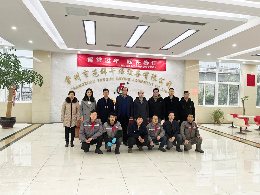 稳岗稳产助企业,留人留工送温暖。今天春江街道各位领导到我公司对留常员工进行了慰问,送来了虎年大礼包,让留在常州过年的外来务工人员感受到了家的温暖。