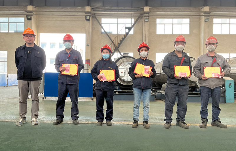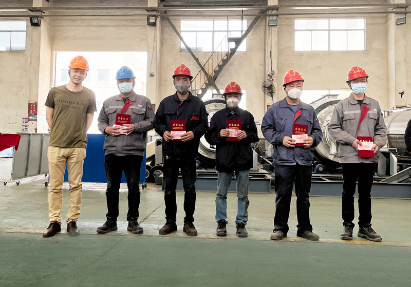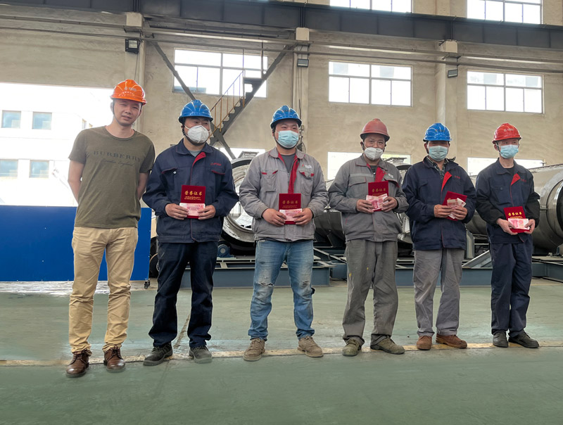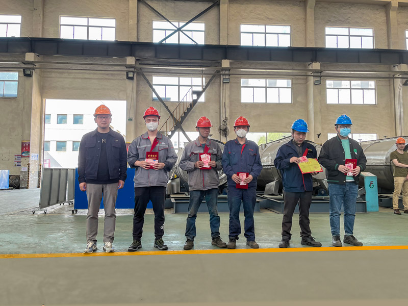 公司总经理范琪、工会主席张涛对获得“五一车间劳动模范”荣誉称号的劳模一流们进行颁奖表彰。