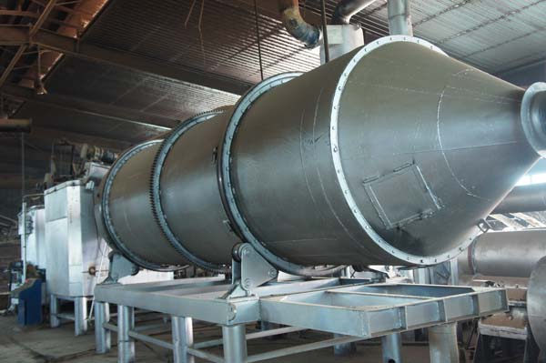 工业烘干设备属于矿山机械,一般多为大、中型机械,其热源来自燃烧装置,采用顺流式加热方式。因此需要烘干的物料,从进料箱、进料溜进入筒体,即被螺旋抄板推向后。由于烘干机倾斜放置,物料一方面在重力和回转作用下流向后端,另一方面物料被抄板反复抄起,带至上端再不断地扬撒下来,使物料在筒内形成均匀的幕帘,充分与筒内的热气流进行热交换,由于物料反复扬撒,所含的水分逐渐被烘干,从而达到烘干的目的。