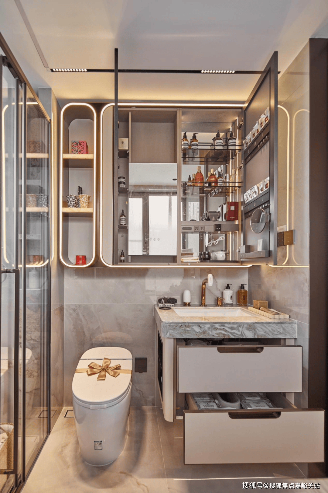 【保利天奕】特别关注到女性的生活需求,专门在卫生间配备了美妆龙头、美妆镜柜▷△、美妆冰箱••,采用“顶+面双补光照明”,能把“女本位”需求做到如此细致,目前没有几个项目能做到!