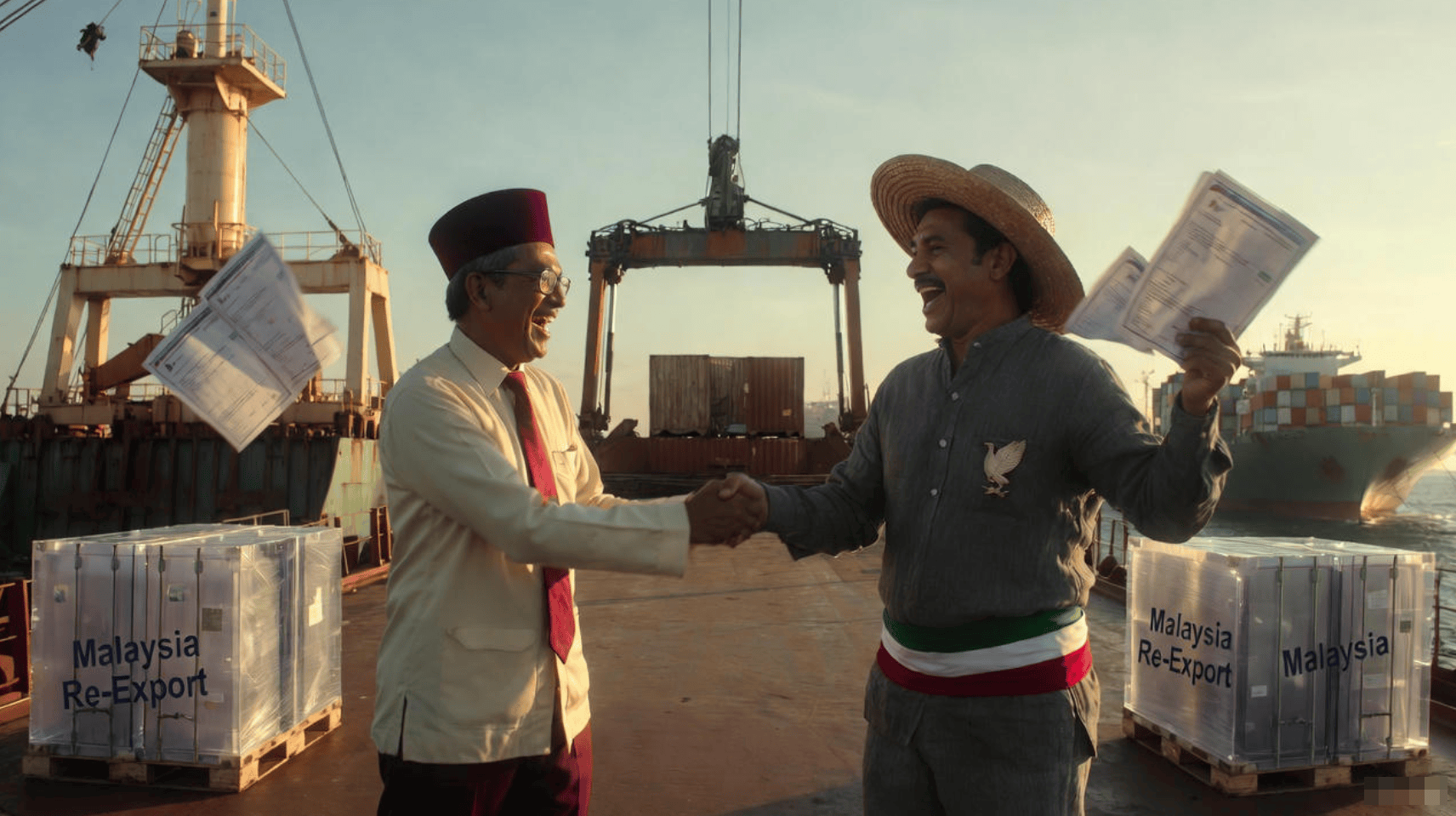 二程运输:完成文件处理后△,货物从第三国重新出口至墨西哥,利用第三国原产地证书实现合规清关△▽。