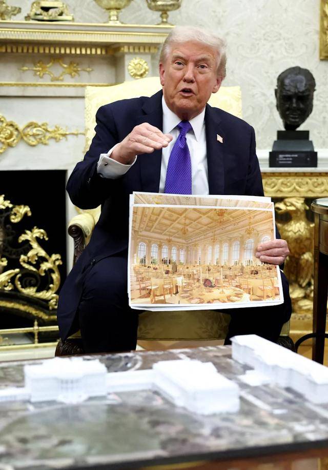 自上任以来,特朗普已启动一系列白宫翻新工程,包括重新设计玫瑰园和棕榈厅,使其更加华丽▪…◇;在白宫整栋建筑内大量添加金色装饰,尤其在椭圆形办公室,并开始建造一个造价可能高达4亿美元的舞厅。