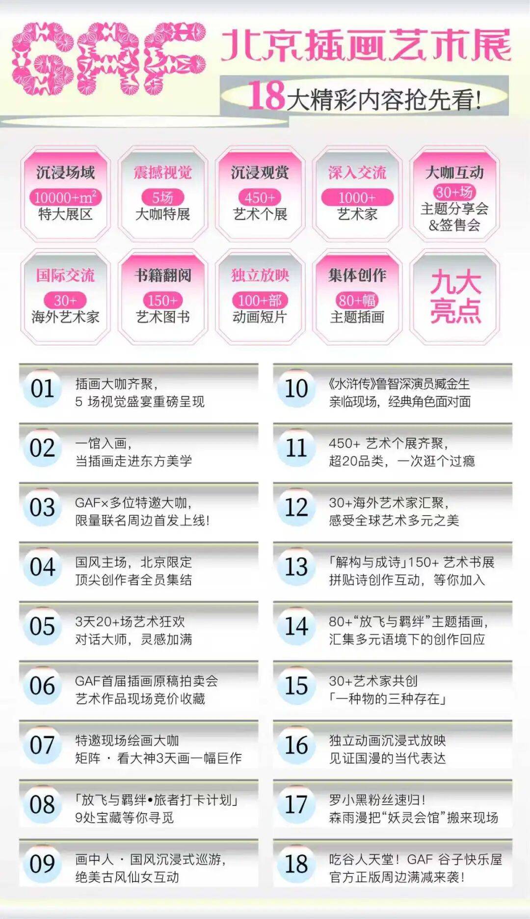 GAF北京站不止于观展,更是一场持续三日的艺术狂欢!我们精心策划了超20场高浓度活动:开幕仪式、跨界对谈、绘本创作、主题分享、限量签售△☆◇、作者见面会..=▽.每日行程满载,直抵创作核心▼●○!