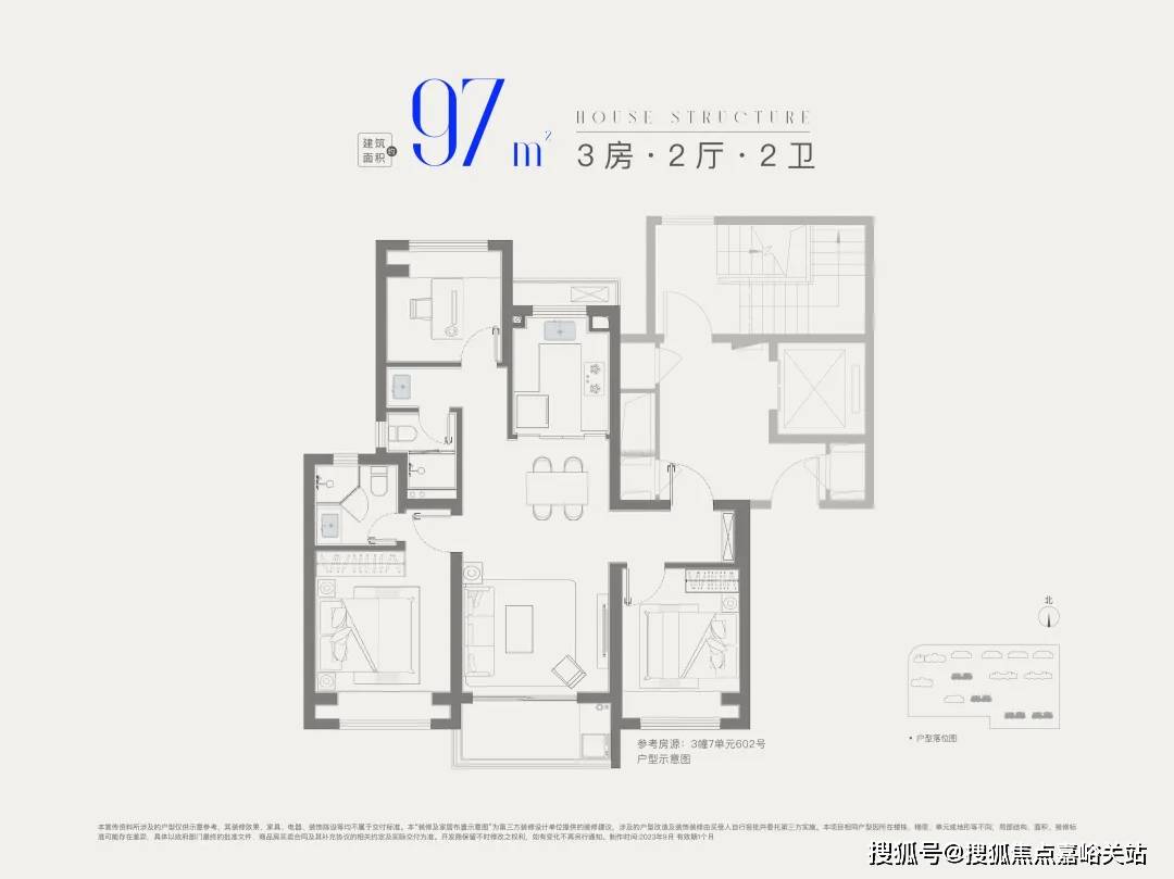 建面约97㎡3房2卫,升级版大3房,入户玄关+主卧套房设计,整体私密性更强△☆◆,空间更为宽敞◇▽。