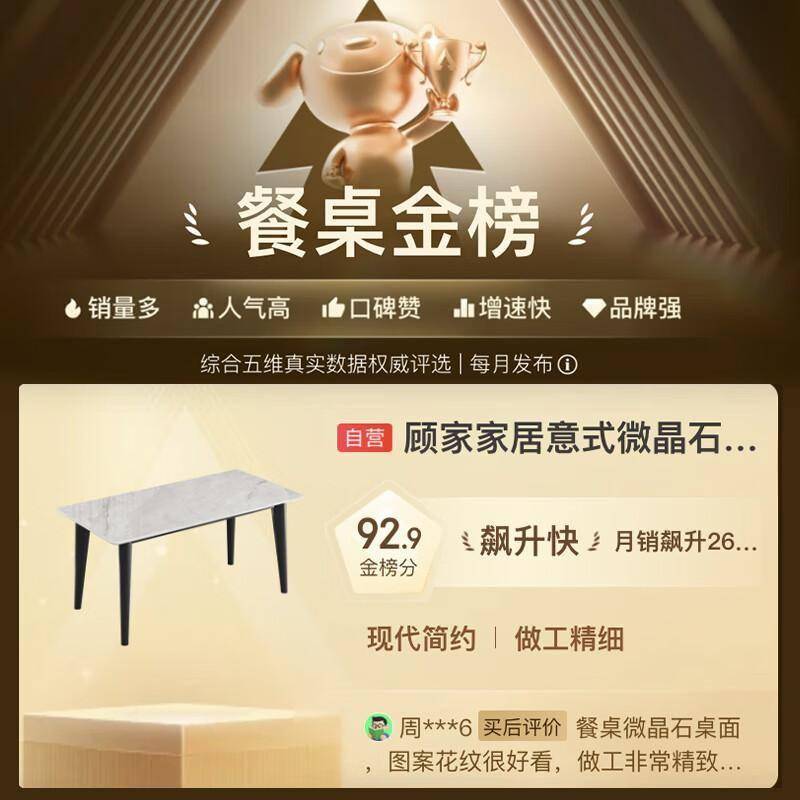 而这款顾家家居意式微晶石餐桌组合,用「微晶石」这种高端建材跨界材质,实现了•“比大理石温润,比岩板耐磨”的平衡。