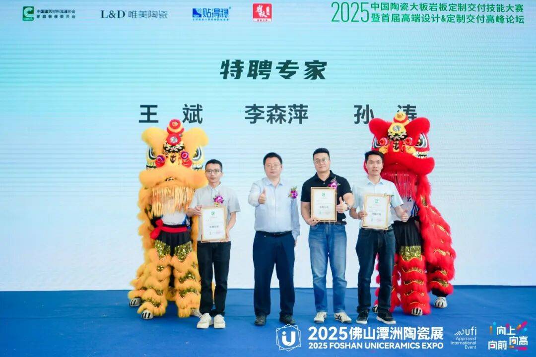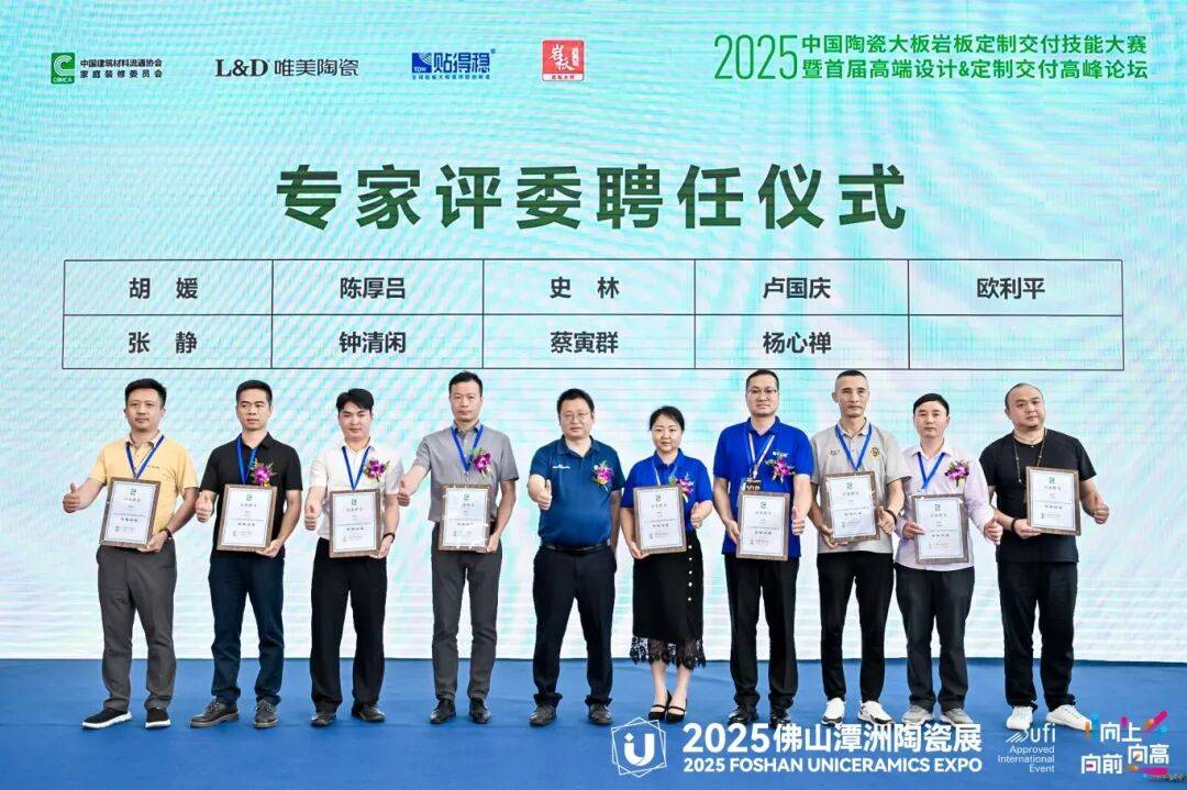 领导致辞后,本次大赛进入了专家评委聘任仪式环节△□。组委会邀请了来自行业内的资深专家与技术能手组成评审团,为选手们的技术操作提供专业、公正的评审◁。评委阵容包括岩板大师/岩板铺贴服务联盟创始人史林先生、L&D唯美陶瓷交付中心总监陈厚吕先生、贴得稳岩板大板瓷砖胶产品研发博士欧利平先生等行业精英,确保大赛的专业性和公正性。