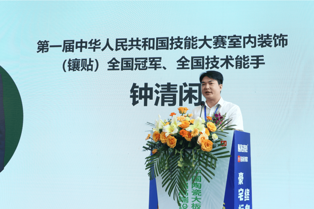 第一届中华人民共和国技能大赛室内装饰(镶贴)全国冠军钟清闲专家发表了致辞。钟专家在致辞中分享了自己的参赛经验▲●,并强调了技术与工艺在岩板定制交付中的重要性:▷▷▲“岩板定制交付不仅仅是技术的较量◆,更是工艺与创新的结合。作为一名技能大赛冠军,我深知□■•,精湛的技术和工艺的结合才能够保证岩板定制交付的质量和效果○■▪。□★◇”