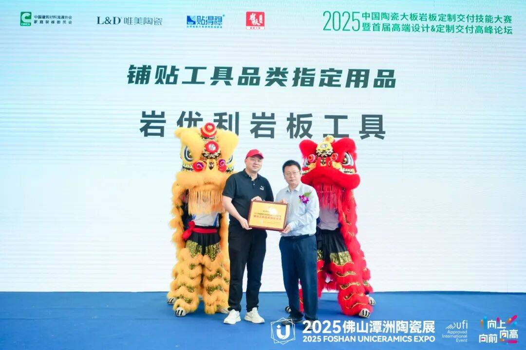 接下来□▽,岩优利岩板工具和特博威工具获得了“铺贴工具品类指定用品▪●”荣誉。这两个品牌的工具产品在本次大赛中为选手们提供了优质的施工支持,确保了岩板定制交付的精确和高效○…●。特别是它们的创新设计和高标准的产品质量,极大地提高了施工效率和质量。