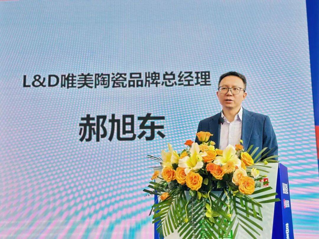 随后,L&D唯美陶瓷品牌总经理郝旭东先生上台致辞。他在讲话中分享了L&D唯美陶瓷在推动岩板定制交付技术创新方面的努力★△,强调了企业如何通过不断创新来引领行业发展□▽☆。郝总表示,作为行业标杆品牌,L&D唯美陶瓷携曲面岩板核心技术与定制交付全案解决方案重磅登场△,以“匠心▪=”对话设计●,以“技术”定义未来。L&D唯美陶瓷凭借卓越的产品实力引领新风尚,其曲面岩板的实际落地效果堪称惊艳△★,在行业内处于领先地位。无论是弧度流畅、无缝拼接▼▽,还是超强物理性能•■,都展现出了高超的工艺水准!这种独特的曲面岩板极大地拓宽了设计师的创作思路,为空间设计带来了更多可能性。设计师们不再局限于传统的平面设计,能够利用曲面岩板打造出更具立体感和艺术感的空间作品◁-=,满足消费者对个性化、高品质家居空间的追求,为高端空间赋予“无界美学”。