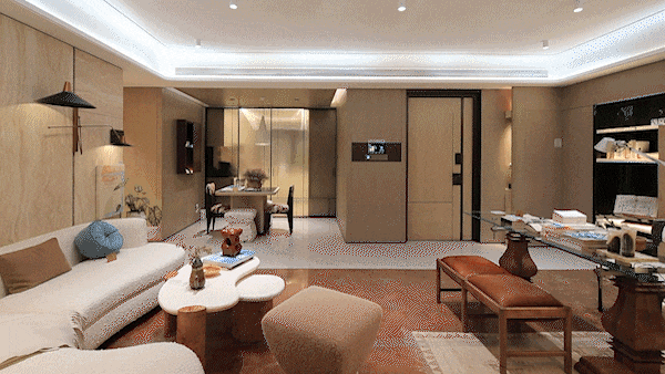 室内空间•=:引入了全屋智能家居系统,能通过App、中控、语音三大方式▲▼,调节全屋智能家居,包括客厅灯光、空调▪▽、地暖、新风、客厅和主卧窗帘等场景。