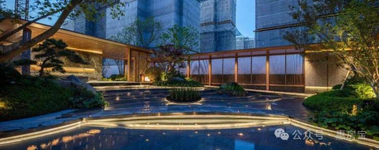 聆星客厅前方种植了松界王者——日本黑松,约4000万+的顶豪融创外滩壹号院的社区内,也有一颗同款;