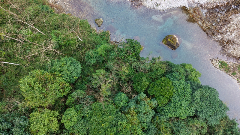 冬季雖雨量偏少,河水流量有所下降,但常年徑流穩定●▲,巡山護林仍需多次蹚水而過▼★。程小敏是土生土長的三元村人,2022年通過招聘成為仙女洞管理站駐站護林員后,便一直堅守崗位,對轄區內的山形◇=•、水系☆◇▲、路況了然於心。她手握柴刀走在最前面▽▼。有了這位“大姐”引路◆,新成員郭婭心裡自然要踏實得多▷▷。
