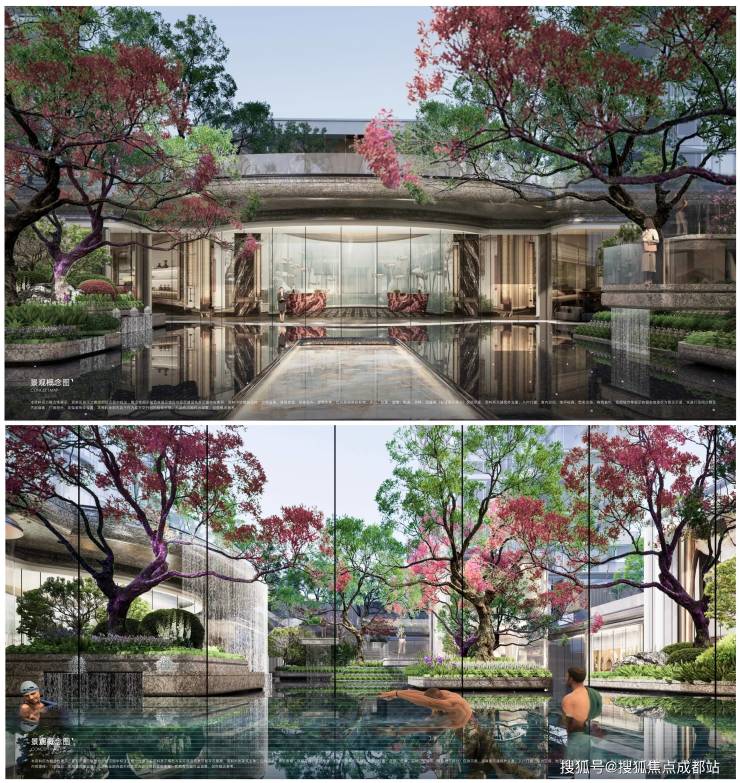 远达天著源境占地约59亩,容积率仅2.0,共规划了17栋全南北朝向的住宅,包括9栋18-22F的板式大平层,与8栋4F的叠拼产品。社区内部则以“一轴九礼,一院四庭”为格局,构建约7000㎡的中央森林社交场,打造约2000㎡下沉式会所,及约4700㎡全首层架空区,包含高端项目必备的私宴厅、恒温泳池等。